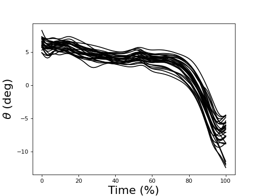 To conduct univariate spm1d analysis the data should be arranged as a (J x Q) array, where J is the number of 1D responses (i.e. trials or subjects) and Q is the number of nodes in the 1D continuum.